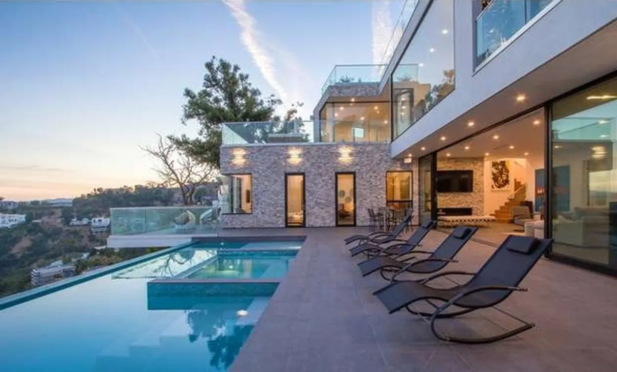 A modern residential hillside construction project in Beverly Hills, CA